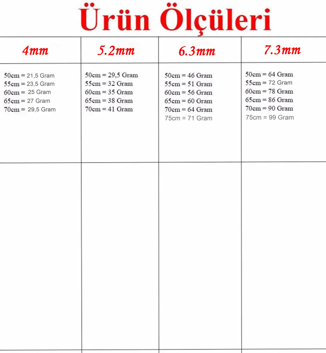 4.5mm - 75 cm - Stokta yok