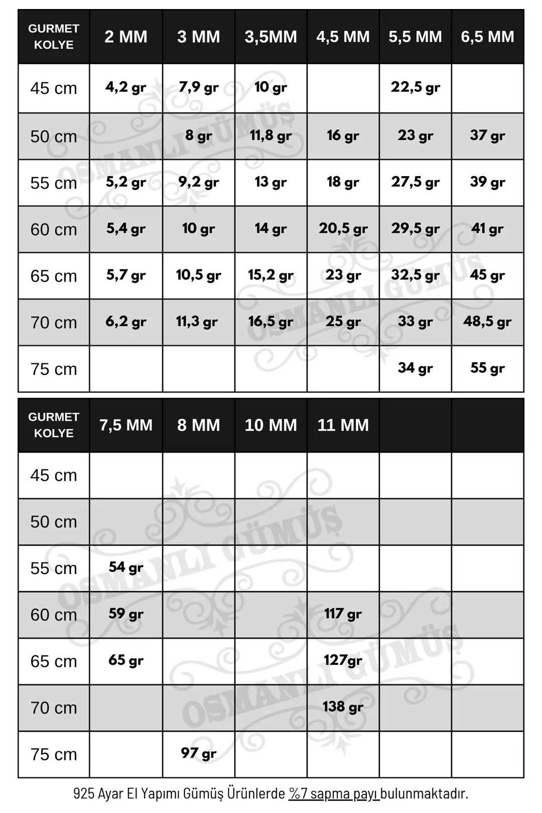 NOT: Ürünlerimizin tamamı el işçiliği ile üretilmiş olup gramaj ve ebatlarda ± %7 sapma oluşabilmektedir.
