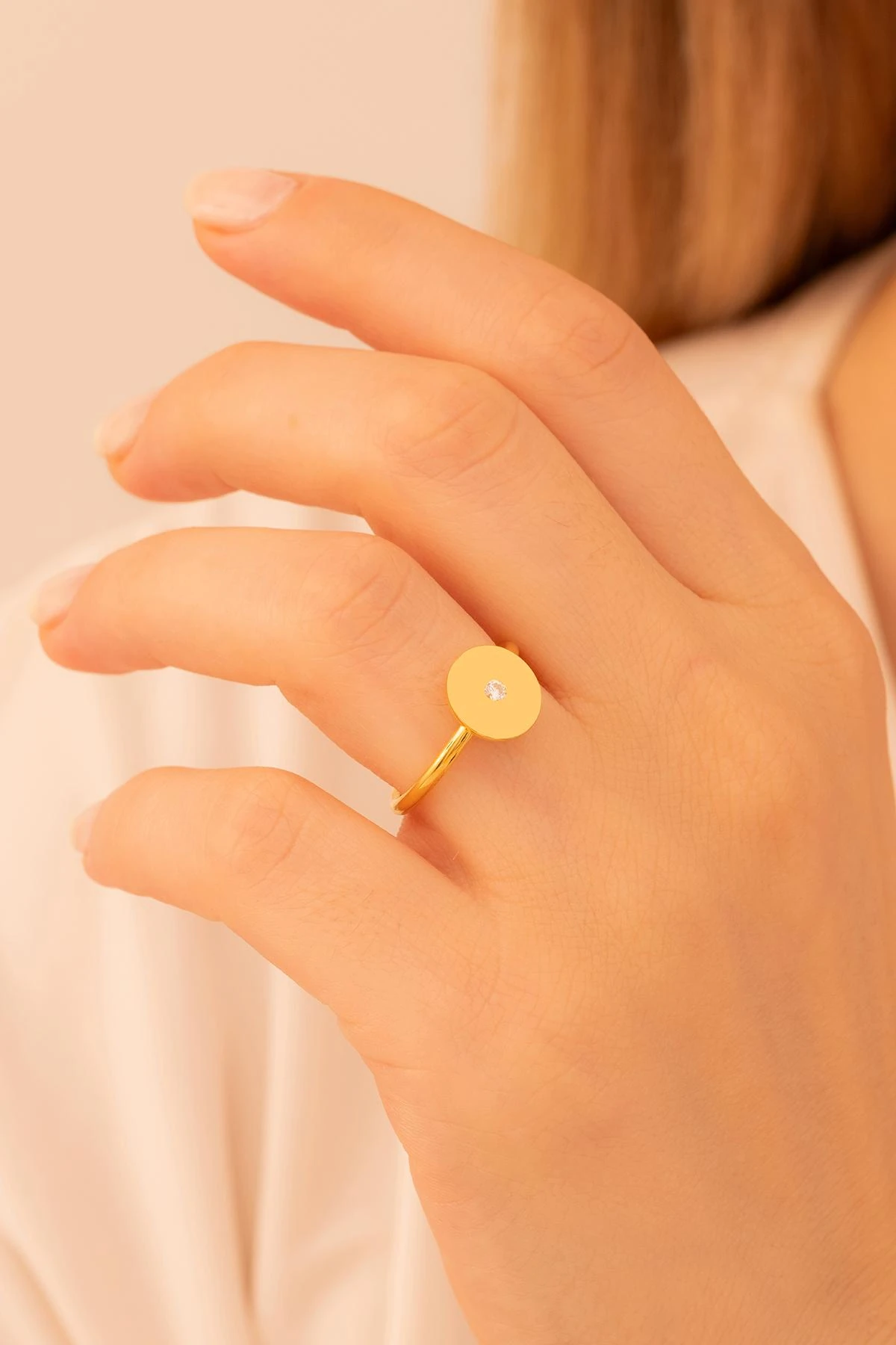 Kadın Gümüş Yüzük - El İşçiliği Altın Kaplama Yuvarlak Motifli Zirkon Taşlı Kadın Yüzük