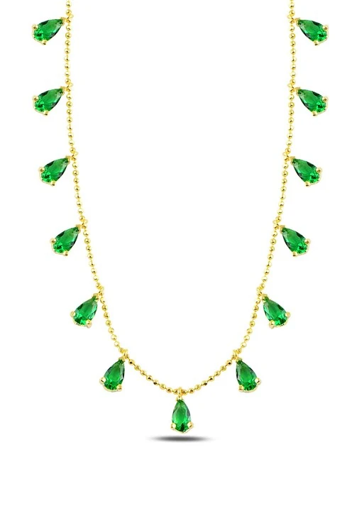 Çise Zümrüt Taşlı Bayan Gümüş Kolye
